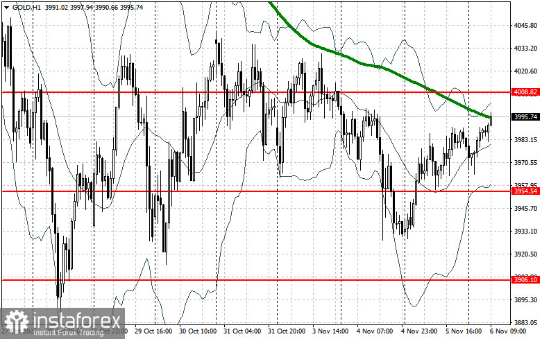 Les acheteurs doivent surmonter la résistance la plus proche à 4 008 $. Cela leur permettra de viser 4 062 $, au-dessus duquel il sera assez difficile de percer. Le plus grand objectif sera autour de 4 124 $. Si l'or baisse, les vendeurs tenteront de prendre le contrôle à 3 954 $. S'ils réussissent, une cassure en dessous de cette fourchette porterait un coup dur aux positions des acheteurs, poussant l'or à un niveau bas de 3 906 $ avec la perspective d'atteindre 3 849 $.