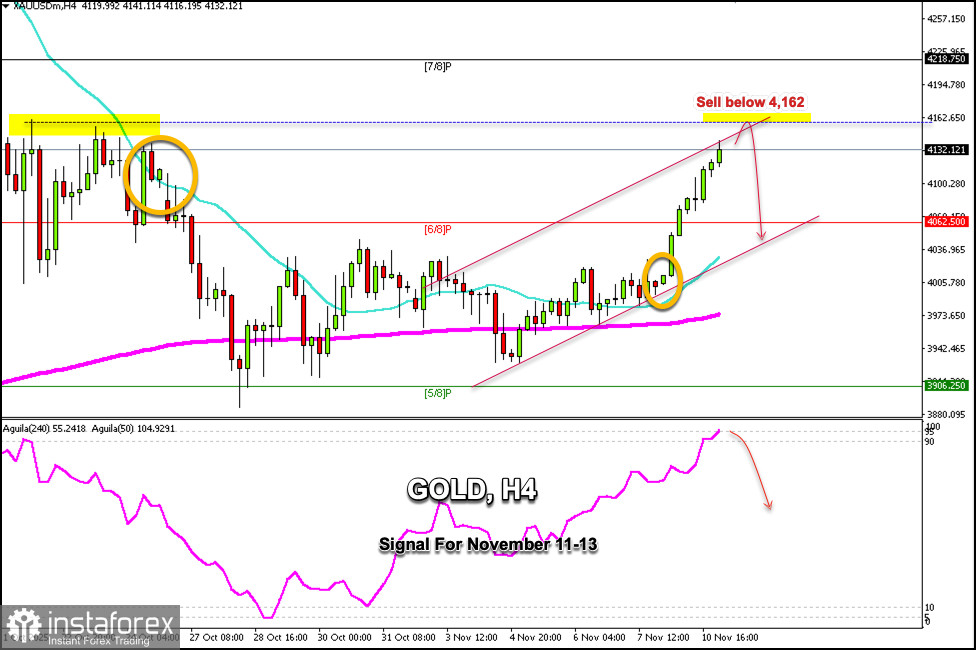Isyarat Dagangan EMAS (XAU/USD) untuk 11-13 November 2025: beli melebihi $4,132 (21 SMA - 6/8 Murray)