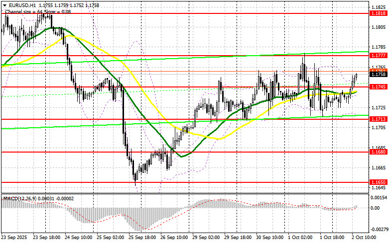 Данные о том, что уровень безработицы в еврозоне вырос до 6,3%, не оказали сильного давления на европейскую валюту в первой половине дня. В ходе американской сессии нас ждет очередная порция цифр по рынку труда США. Ожидается выход недельного числа первичных обращений за пособием по безработице, а также индекс сокращения рабочих мест от Challenger и изменение объема производственных заказов. Финалом дня станет выступление член FOMC Лори К. Логан. Слабые данные, по аналогии со вчерашним днем, вновь окажут давление на доллар. В ином случае давление на пару вернется, чем можно будет воспользоваться. Формирование ложного пробоя в районе 1.1713 будет поводом для открытия новых длинных позиций в расчете на обновление сопротивления 1.1745, выше которого сейчас покупатели пытаются закрепиться. Прорыв и обратный тест этого диапазона станут подтверждением правильной точки вход с выходом к области 1.1777. Самой дальней целью будет уровень 1.1818, где буду фиксировать прибыль. При варианте снижения EUR/USD и отсутствия активности в районе 1.1713, пара вернется к падению. Медведи в таком случае сумеют дотянуться до 1.1680. Лишь после формирования там ложного пробоя собираюсь действовать на покупку евро. Открывать длинные позиции сразу на отскок планирую от 1.1650 с целью восходящей коррекции в 30-35 пунктов внутри дня.