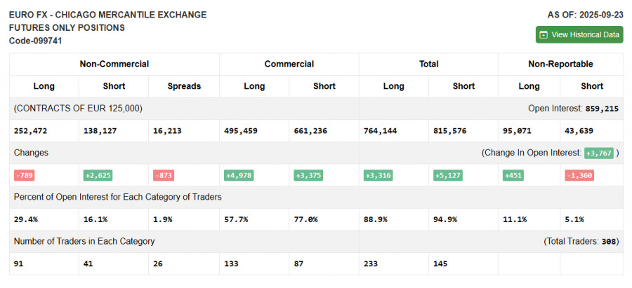 В COT-отчете (Commitment of Traders) за 23 сентября наблюдался рост коротких позиций и сокращение длинных. В COT-отчете указано, что длинные некоммерческие позиции сократились на 789 до уровня 252 472, в то время как короткие некоммерческие позиции выросли на 2 625 до уровня 138 127. В результате спрэд между длинными и короткими позициями сократился на 33 691.