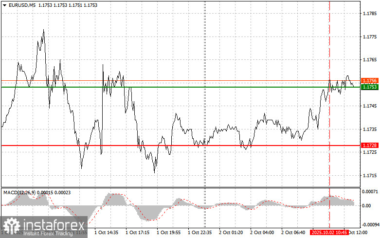 Тест цены 1.1753 пришелся на момент, когда индикатор MACD много прошел вверх от нулевой отметки, что ограничивало восходящий потенциал пары. По этой причине я не покупал евро.