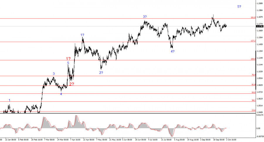Волновая разметка 4-часового графика для инструмента EUR/USD не меняется уже несколько месяцев, но в последние дни все же приобретает достаточно сложный вид. Пока еще рано делать выводы об отмене повышательного участка тренда, но усложнение волновой разметки в ближайшее время вполне возможно.