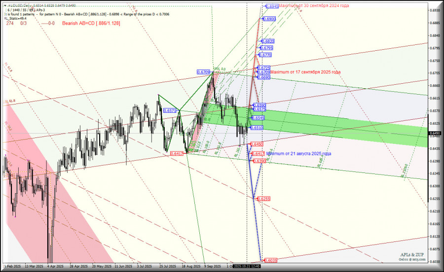 Australian Dollar vs US Dollar - Daily - основные торговые уровни конца октября - начала ноября. Комплексный анализ APLs & ZUP с 22 октября 2025 года.
