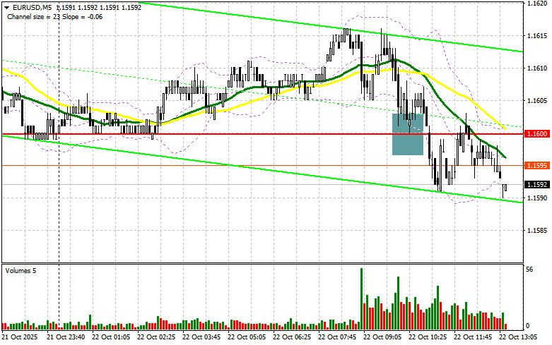 В своем утреннем прогнозе я обращал внимание на уровень 1.1600 и планировал от него принимать решения по входу в рынок. Давайте посмотрим на 5-минутный график и разберемся с тем, что там произошло. Снижение и формирование ложного пробоя в районе 1.1600 привели к точке входа на покупку евро, однако до нормального движения вверх дело так и не дошло. На вторую половину дня техническая картина была пересмотрена.