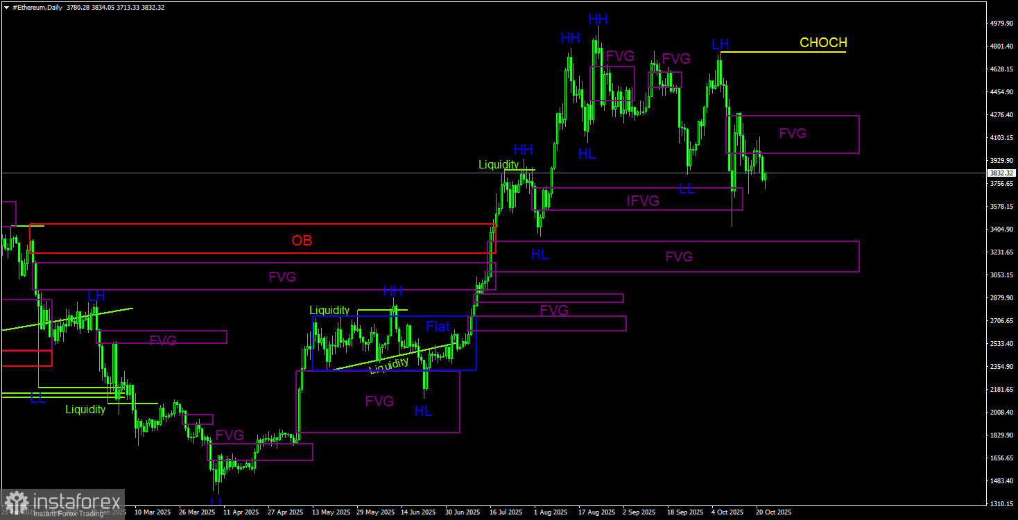 Торговые рекомендации по Эфиру(Ethereum) на 23 октября по системе ICT.