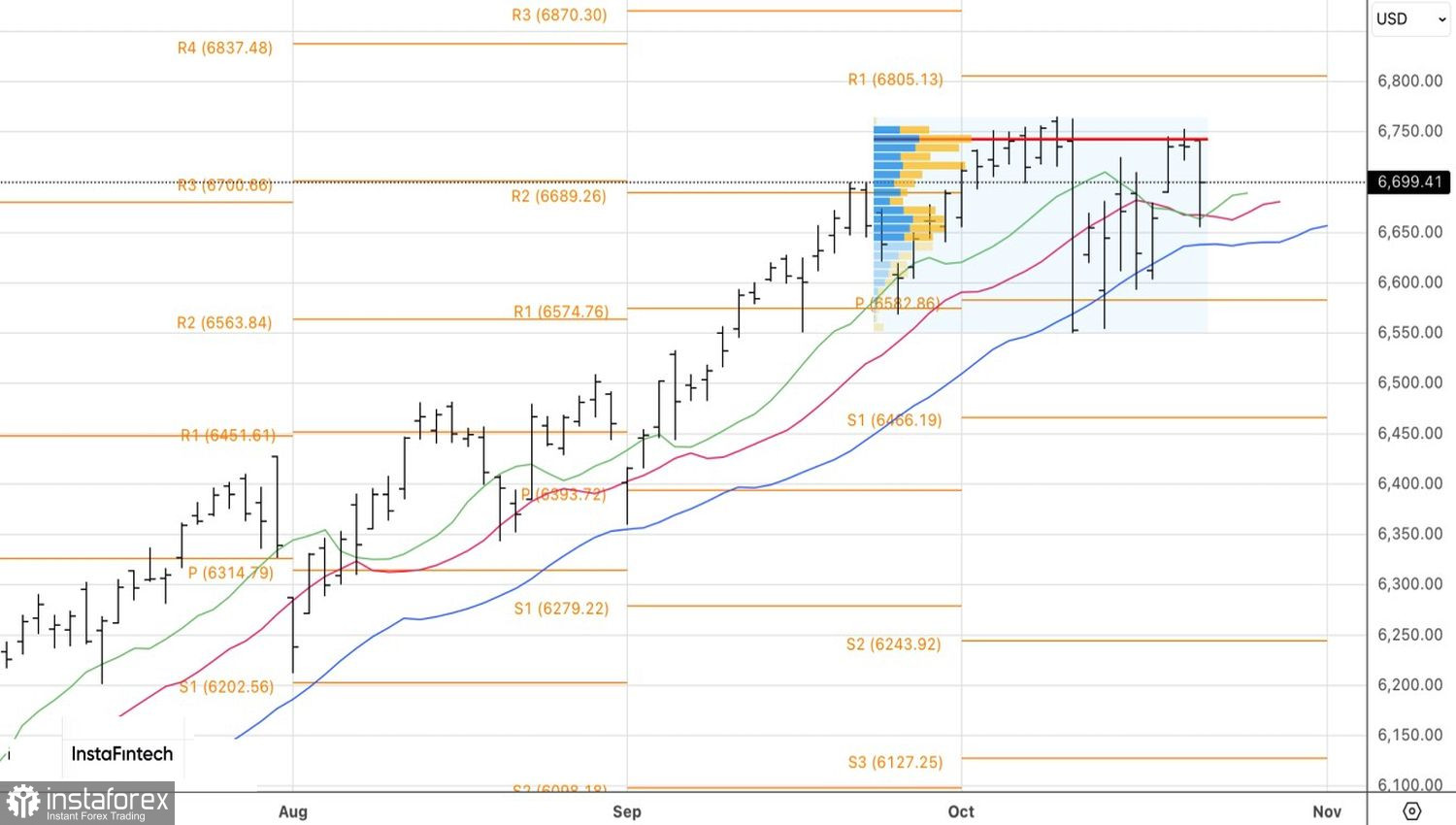 Технически на дневном графике S&P 500 был отыгран доджи-бар. Сформированные от 6720 шорты следует удерживать и периодически наращивать.