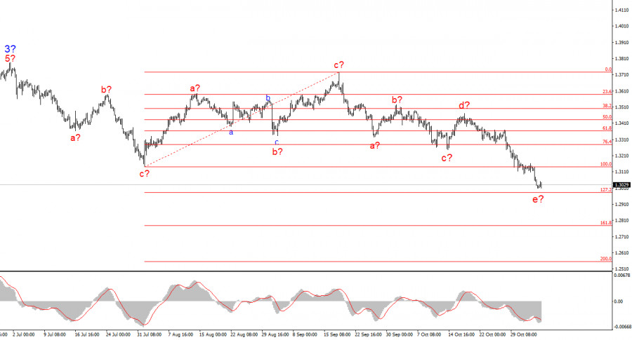 Волновая картина инструмента GBP/USD видоизменилась. Мы продолжаем иметь дело с повышательным, импульсным участком тренда, но его внутренняя волновая структура приобретает более сложный вид. Волна 4 принимает трехволновой вид, и ее структура получается в разы протяженнее, чем у волны 2. Очередная понижательная коррекционная структура близится к своему завершению. Я продолжаю ожидать, когда основная волновая структура возобновит свое построение с первоначальными целями около 38 и 40 фигур, и считаю, что это может произойти уже в начале ноября.