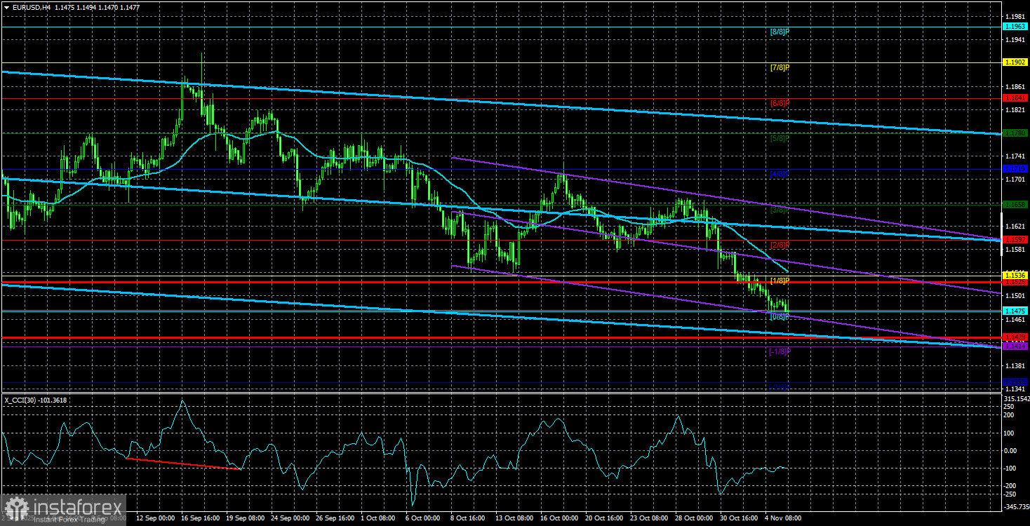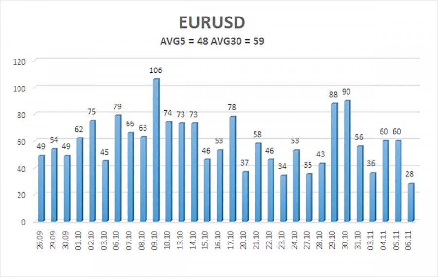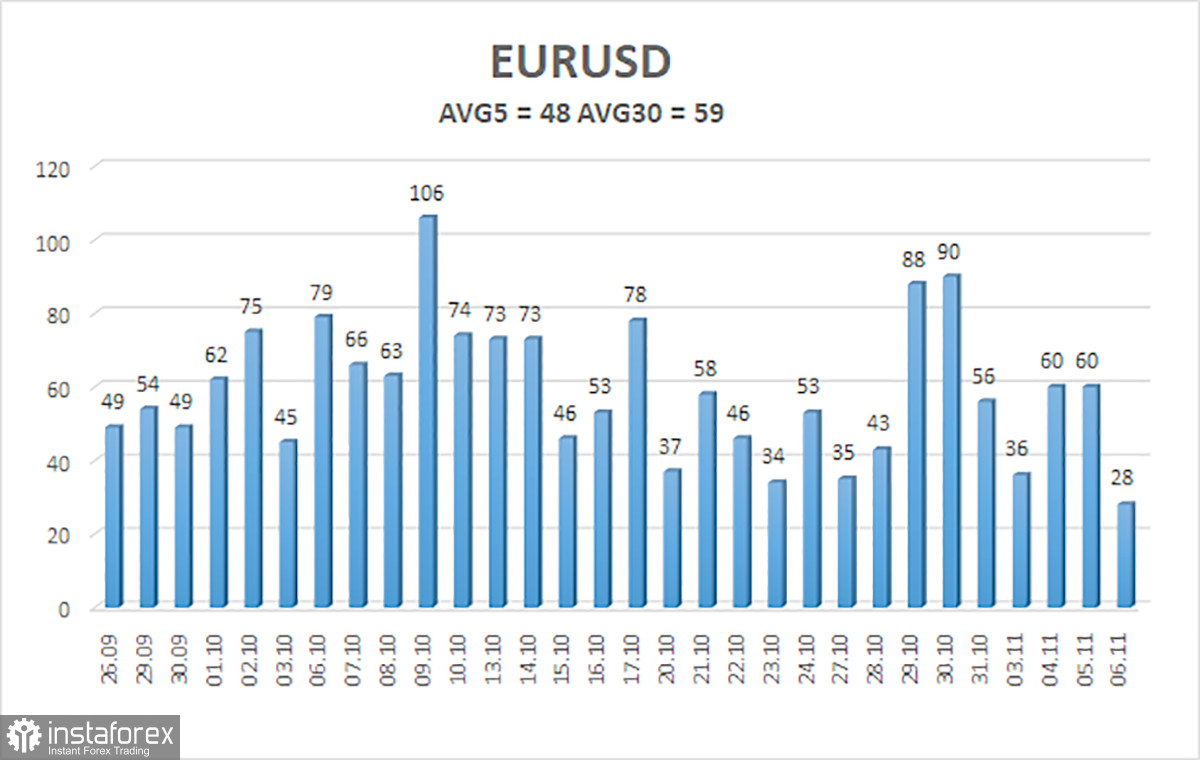Обзор пары EUR/USD. 6 ноября. Евровалюта продолжает техническую коррекцию.