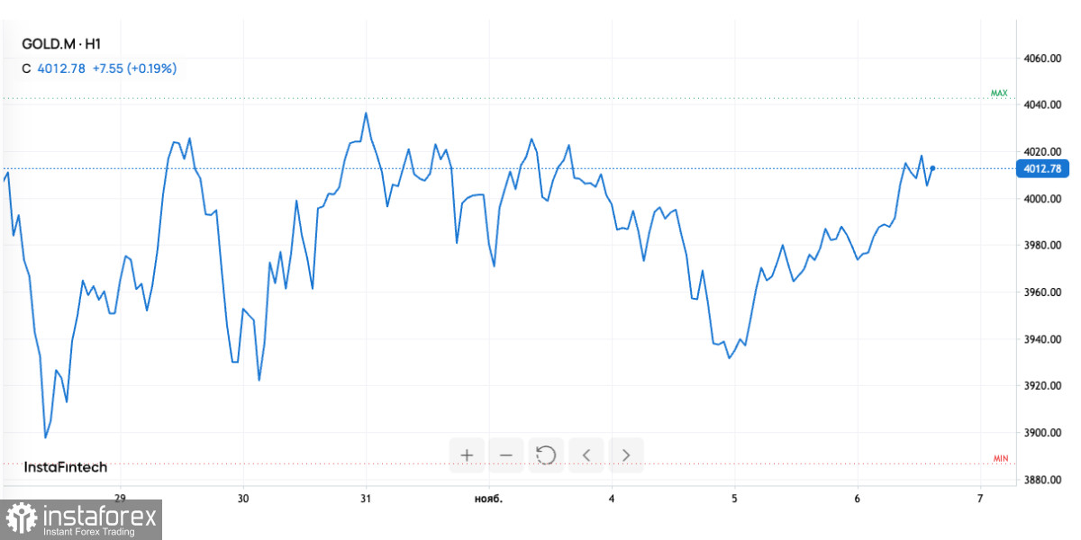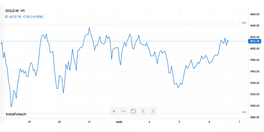 Мировой рынок золота завершает первую неделю ноября в зоне уверенности. После короткой паузы котировки снова закрепились у ключевого уровня $4000 за унцию. Восстановлению помогло ослабление доллара и общая неопределенность вокруг экономики США, где продолжается самое длительное в истории закрытие правительства. На фоне шаткого фундамента золото снова проявляет себя как надежный защитный актив, хотя и не без давления со стороны более рискованных рынков.