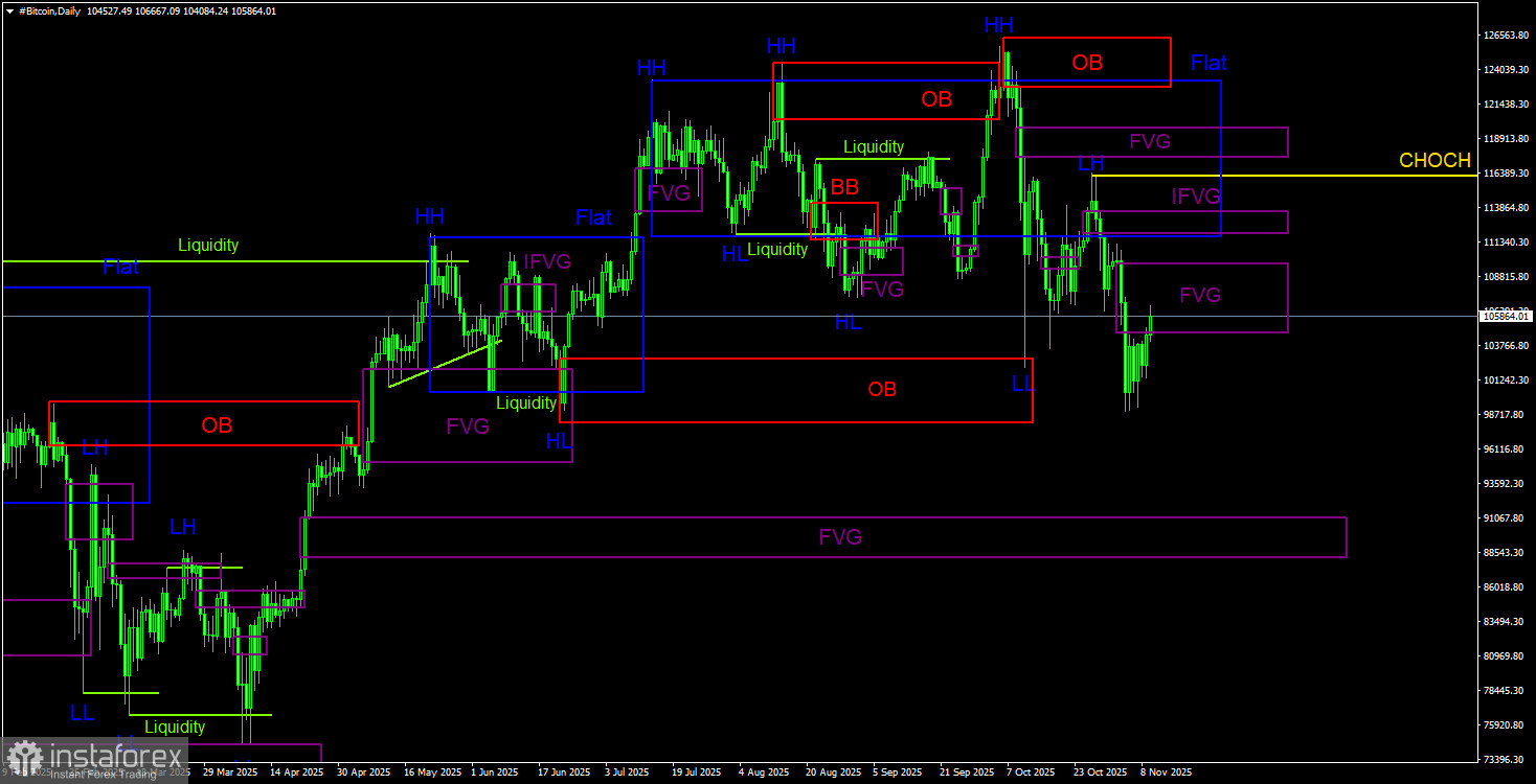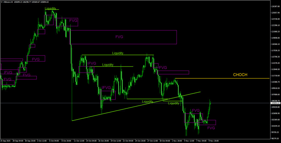 Торговые рекомендации по Биткоину(Bitcoin) на 10 ноября по системе ICT.