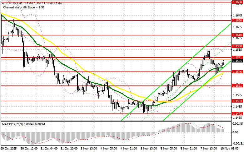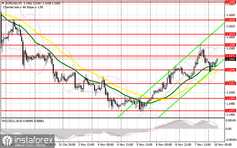 Резкое снижение индекса настроения потребителей от Университета Мичигана в США привело к аналогичному снижению американского доллара против европейской валюты. Сегодня по еврозоне нет никакой важной фундаментальной статистики, а ожидается лишь индикатор уверенности инвесторов от Sentix. Это может стать проблемой для дальнейшего роста евро против американского доллара. При очень плохих показателях можно ожидать небольшой волны снижения пары по аналогии с той, которую мы наблюдали в ходе азиатских торгов. В таком случае действовать буду в районе ближайшей поддержки 1.1546, образованной по итогам сегодняшнего дня. Лишь формирование там ложного пробоя даст точку входа в длинные позиции с целью восстановления к сопротивлению 1.1571. Прорыв и обратный тест этого диапазона станут подтверждением правильных действий на покупку евро уже в расчете на более крупный рывок пары к 1.1590. Самой дальней целью выступит область 1.1610, где буду фиксировать прибыль. Тест этого уровня приведет к укреплению бычьего рынка по евро. При варианте снижения EUR/USD, и отсутствия активности в районе 1.1546, давление на пару увеличится, что может привести к более крупной распродаже. Продавцы наверняка сумеют дотянуться до следующего интересного уровня 1.1521. Лишь формирование там ложного пробоя будет подходящим условием на покупку евро. Открывать длинные позиции сразу на отскок будут от 1.1494 с целью восходящей коррекции в 30-35 пунктов внутри дня.
