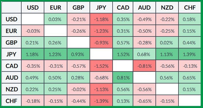 В таблице ниже представлены процентные изменения курса доллара США относительно основных валют за последние семь дней, где доллар проявил наибольшую силу против канадского доллара.