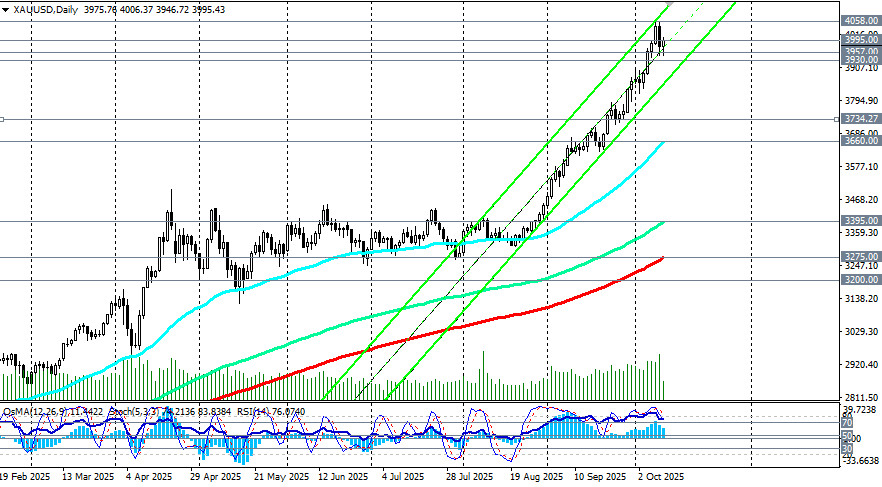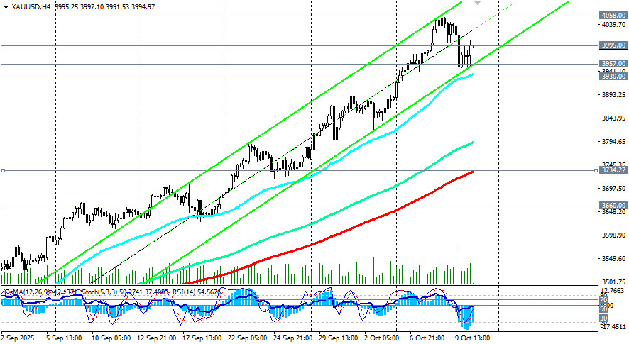 На момент публикации данной статьи, XAU/USD также торговалась вблизи отметки 3995.00. В целом преобладает восходящая динамика.