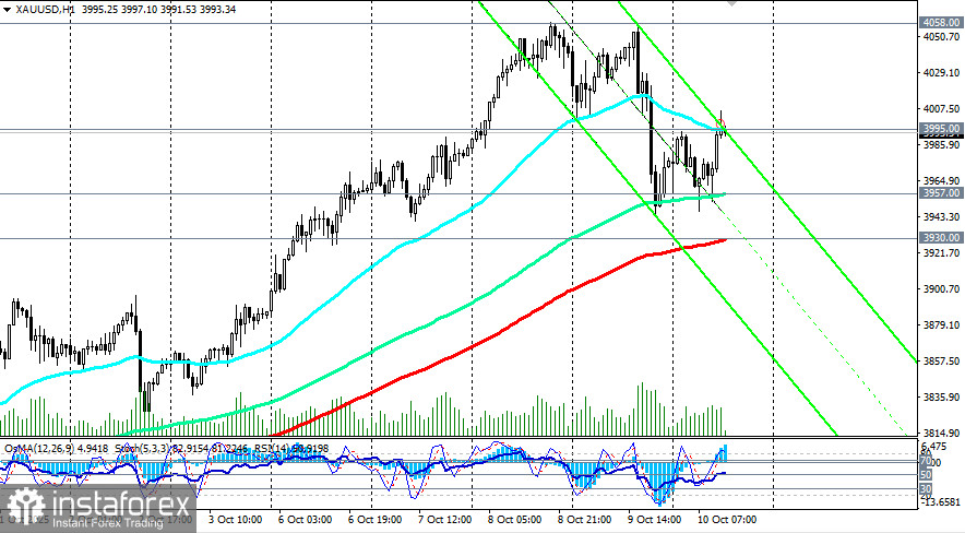 Сегодняшняя азиатская торговая сессия была проведена в диапазоне. Цена колебалась между уровнями поддержки 3957.00 (ЕМА144 на 1-часовом графике) и сопротивления 3995.00 (ЕМА50 и верхняя линия нисходящего канала на 1-часовом графике).