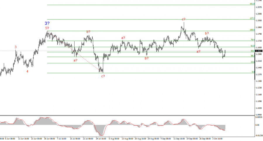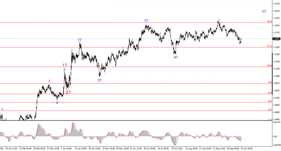 Построение повышательного участка тренда продолжается, а новостной фон продолжает поддерживать по большей части не доллар. Торговая война, начатая Дональдом Трампом, продолжается. Противостояние с ФРС продолжается. «Голубиные» ожидания рынка по ставке ФРС растут. В Америке продолжается «шатдаун». Рынок крайне невысоко оценивает результаты первых 7-8 месяцев Дональда Трампа, хоть экономический рост во втором квартале и составил почти 4%.