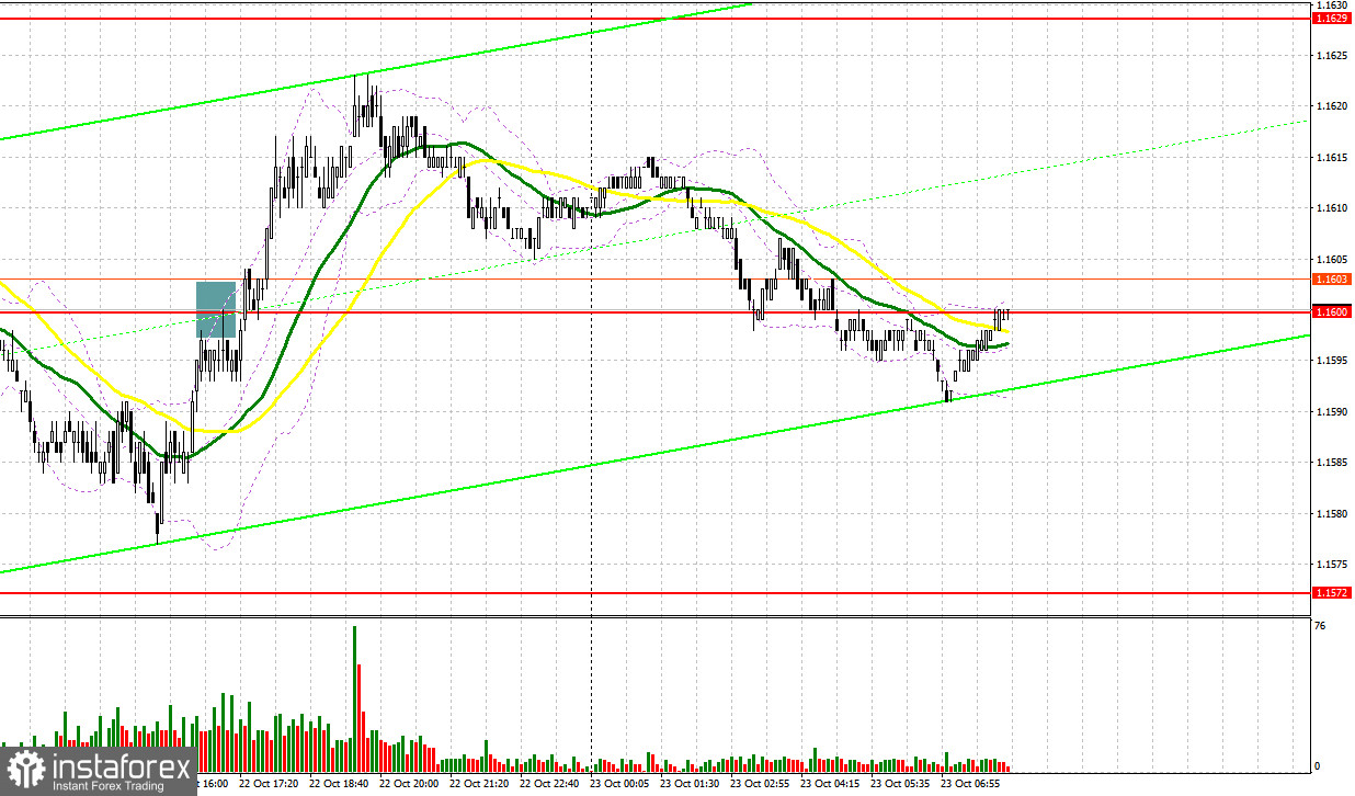Вчера было образовано несколько точек входа в рынок. Давайте посмотрим на 5-минутный график и разберемся с тем, что там произошло. В своем утреннем прогнозе я обращал внимание на уровень 1.1600 и планировал от него принимать решения по входу в рынок. Снижение и формирование ложного пробоя в районе 1.1600 привели к точке входа на покупку евро, однако до нормального движения вверх дело так и не дошло. Во второй половине дня продажи от уровня 1.1600 на ложном пробое вылились в фиксацию убытков, так как падения евро в развитие нового тренда так и не состоялось.