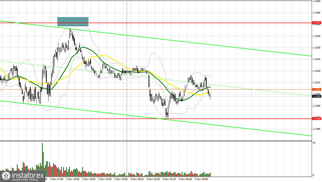 Вчера я так и не дождался подходящих точек входа в рынок. Давайте посмотрим на 5-минутный график и разберемся с тем, что там произошло. В своем утреннем прогнозе я обращал внимание на уровень 1.1520 и планировал от него принимать решения по входу в рынок. Снижение в район 1.1520 произошло, но дождаться там формирования подходящих точек входа в рынок не удалось. Во второй половине дня история повторилась, но уже с ростом в район 1.1541, где до обновления не хватило снова пары пунктов.