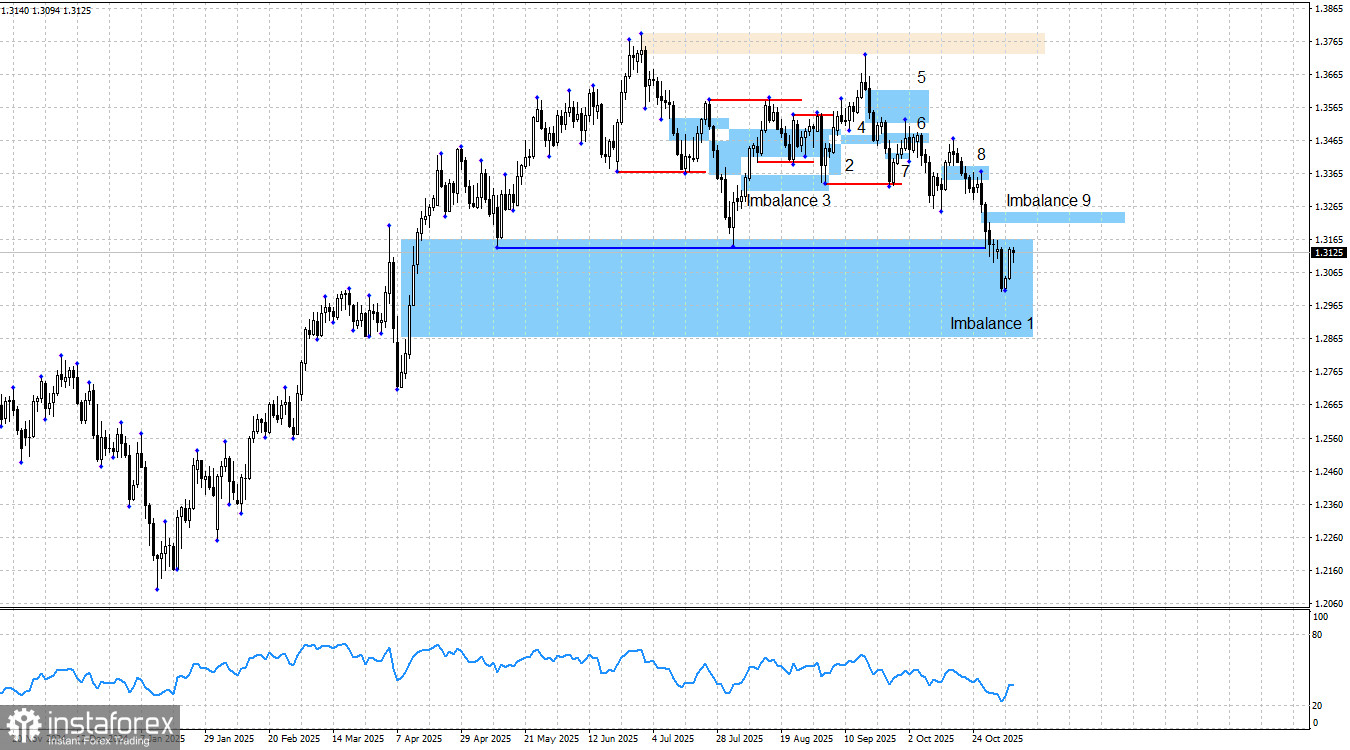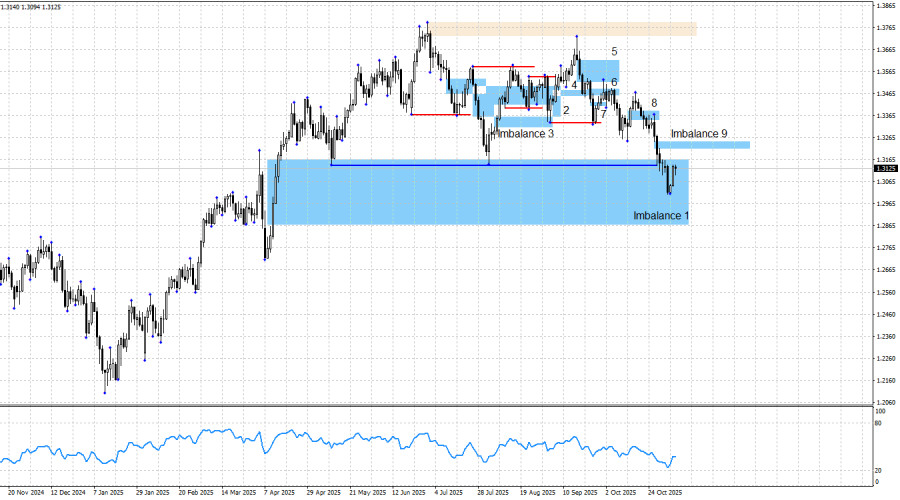 Также в данное время уже нельзя игнорировать последний «медвежий» имбаланс 9, так как с каждым днем британец становится все ближе к «медвежьему» тренду. Но сначала британец должен выполнить возврат к этой зоне, а уже потом можно будет говорить о возможной реакции и новом падении.