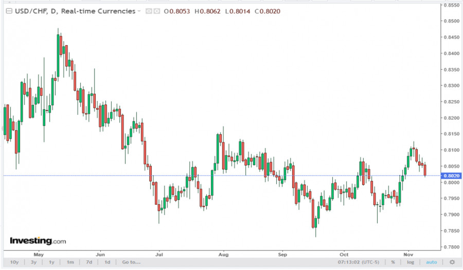 Спрос на безопасные активы поддерживает швейцарский франк. Франк традиционно укрепляется в периоды неопределенности. На текущий момент настроения поддерживаются: