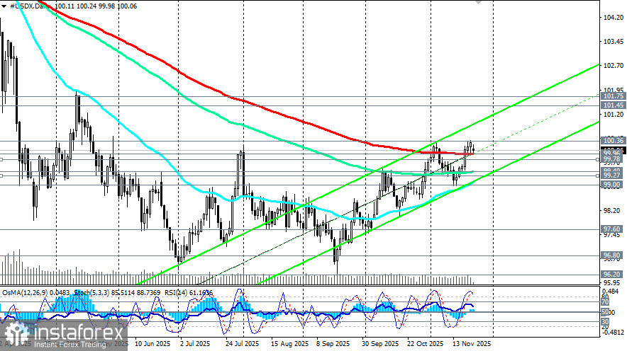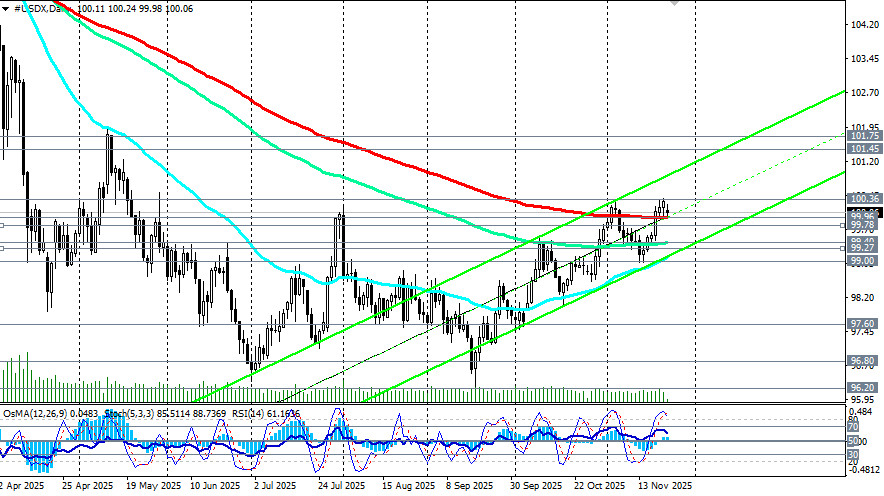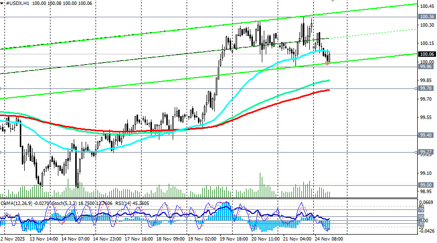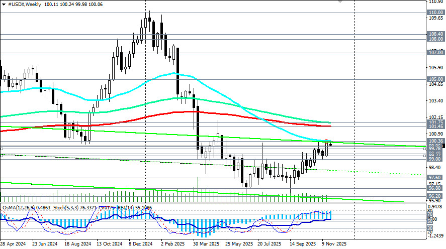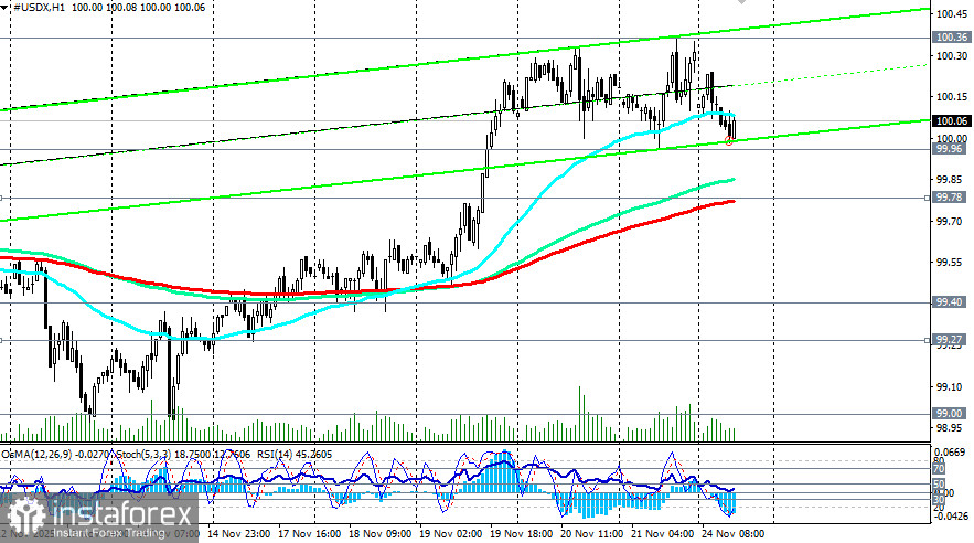 В начале сокращенной праздничной недели (в связи с Днем благодарения в четверг) в США, индекс доллара USDX демонстрирует попытки стабилизации вблизи важной психологической отметки 100.00. На финансовых же рынках наблюдается относительное затишье, предшествующее оживленным действиям, связанным с ключевыми макроэкономическими показателями и важными решениями Федерального резерва США.