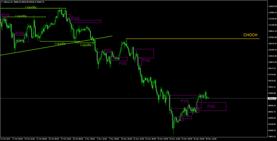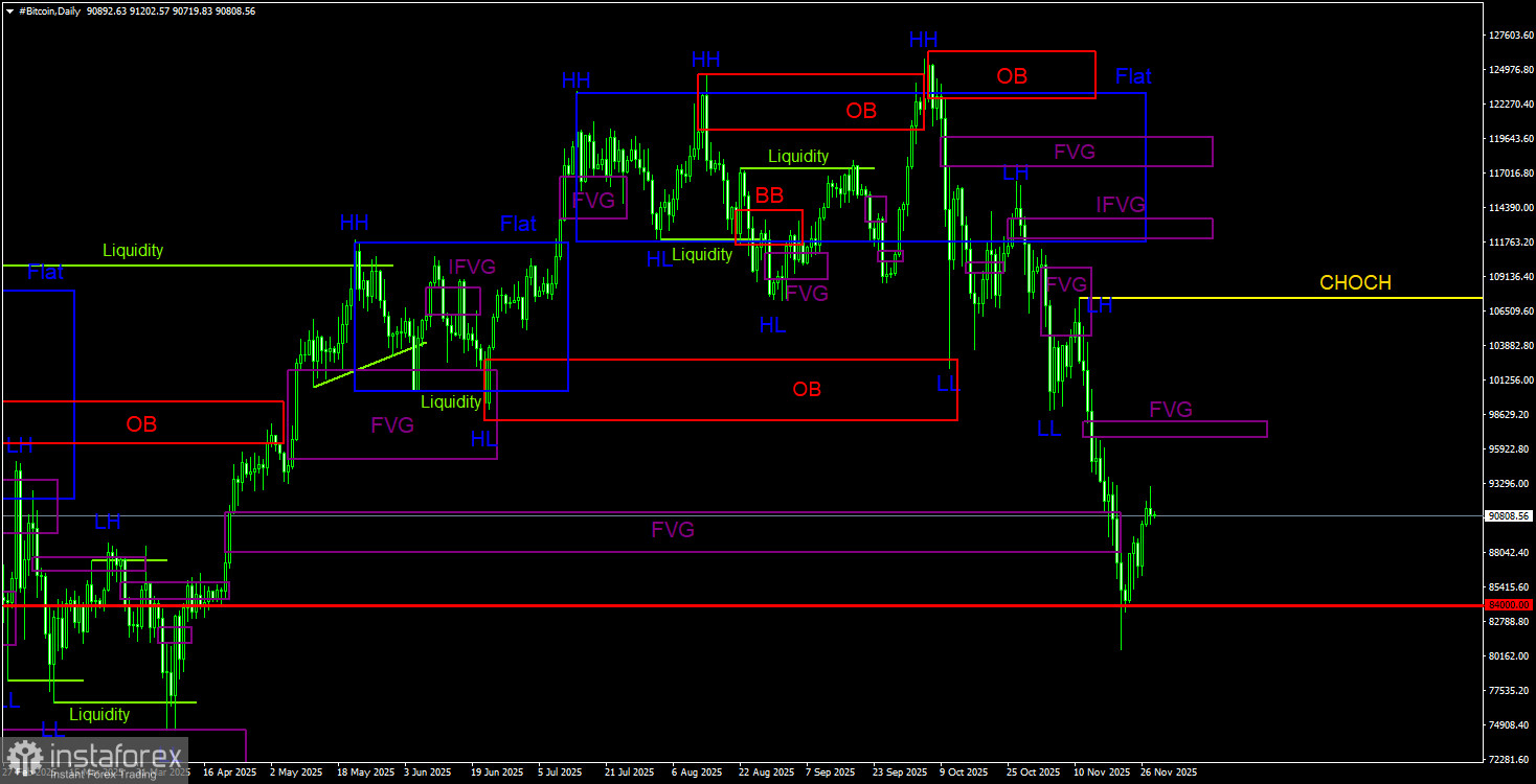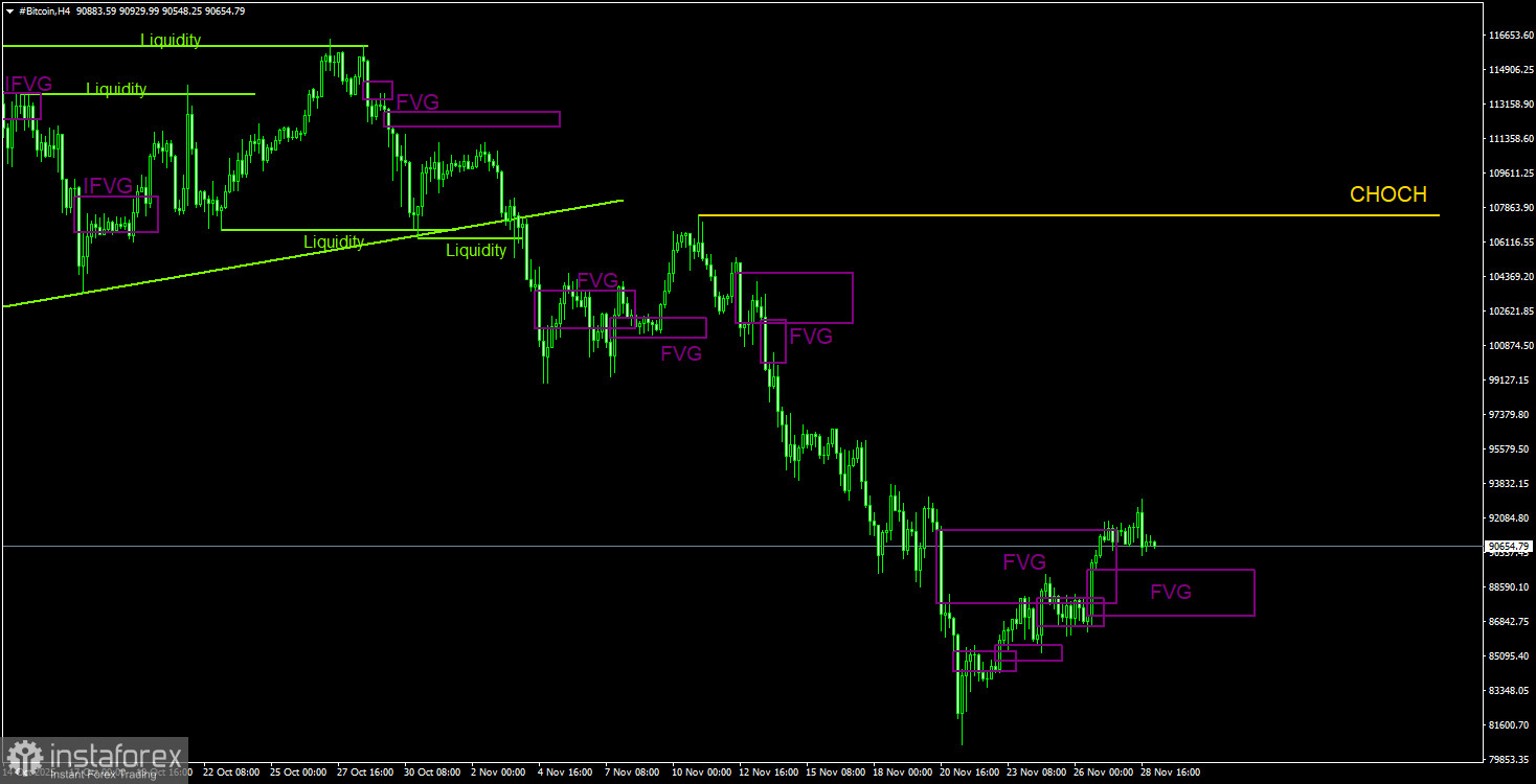 Торговые рекомендации по Биткоину(Bitcoin) на 29 ноября по системе ICT.