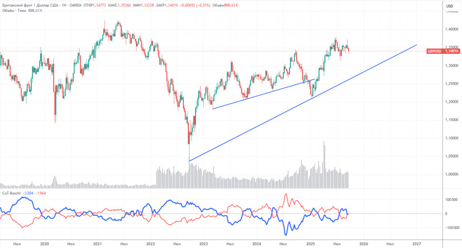 В 2025 году фунт очень сильно вырос, но следует понимать, что причина одна – политика Дональда Трампа. Как только эта причина будет нивелирована, доллар может перейти в рост, но когда это произойдет – не знает никто. Неважно, какими темпами растет или падает нетто-позиция по фунту. По доллару она в любом случае падает и, как правило, более высокими темпами.